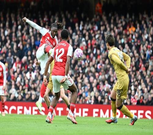 在阿森纳与水晶宫比赛进行至第39分钟时,阿森纳获得前场任意球,赖斯将球开到禁区,加布里埃尔头球争抢,皮球弹到点球点附近,在弧顶处狩猎的埃泽觅得机会,跟进凌空,用一个剪刀脚的动作将球踹进了球门!