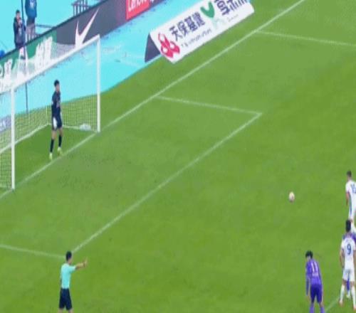 上半场补时第5分钟,王献均禁区内手球,主裁判回看慢镜头之后判罚点球,吴曦主罚点球破门,2比0!