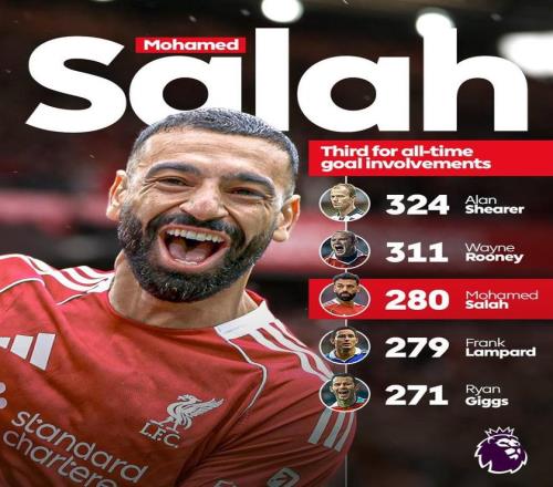 这使得他萨拉赫超越兰帕德(279),独占英超历史参与进球榜第三,仅次于阿兰-希勒(324)和鲁尼(311)。