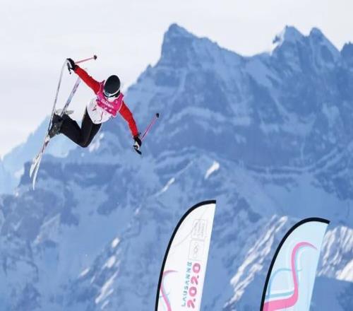 2020年1月21日,谷爱凌在瑞士莱森进行的第三届冬季青年奥林匹克运动会自由式滑雪女子大跳台预赛中。新华社记者 逯阳 摄