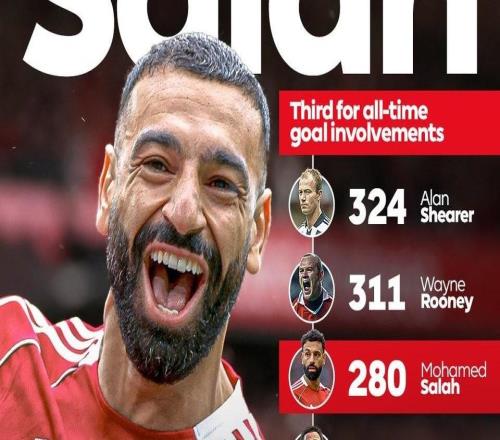 萨拉赫英超生涯已参与280球,超越兰帕德独占历史第三